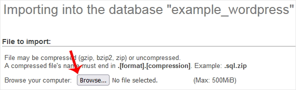 3. From the navigation tree in the left sidebar, select an appropriate database in which you want to import data using the SQL file.